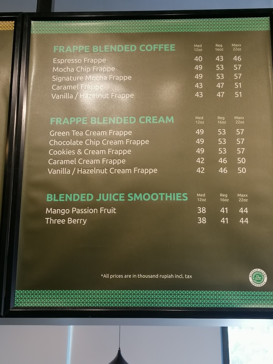 Maxx Coffee DP Mall Menu